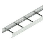 The joining of the ladders is performed by using the couplings INOXS 60 and min. 4 pcs of bolts NIXSM 6X10. The side walls are L-profiles with return flange. The perforated C-profile rungs are placed in the side walls by extrusion with a spacing of 300 mm, with open side of the profile facing up.