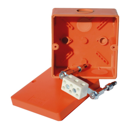 The box is equipped with a ceramic terminal block - 3 poles, with maintained functionality in fire. It is fastened using anchors for use in concrete (supplied). The boxes are designed for use only for power cables with proven functionality during fire. The fire-resistant wiring boxes are made from halogen-free material and contain soft conduits to make it easier to route cables into the box.